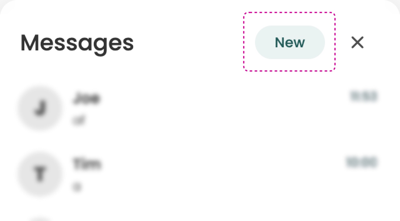 To get started click on the "New" or "New Message" button in the top right corner of the Messaging dashboard or Messaging panel.